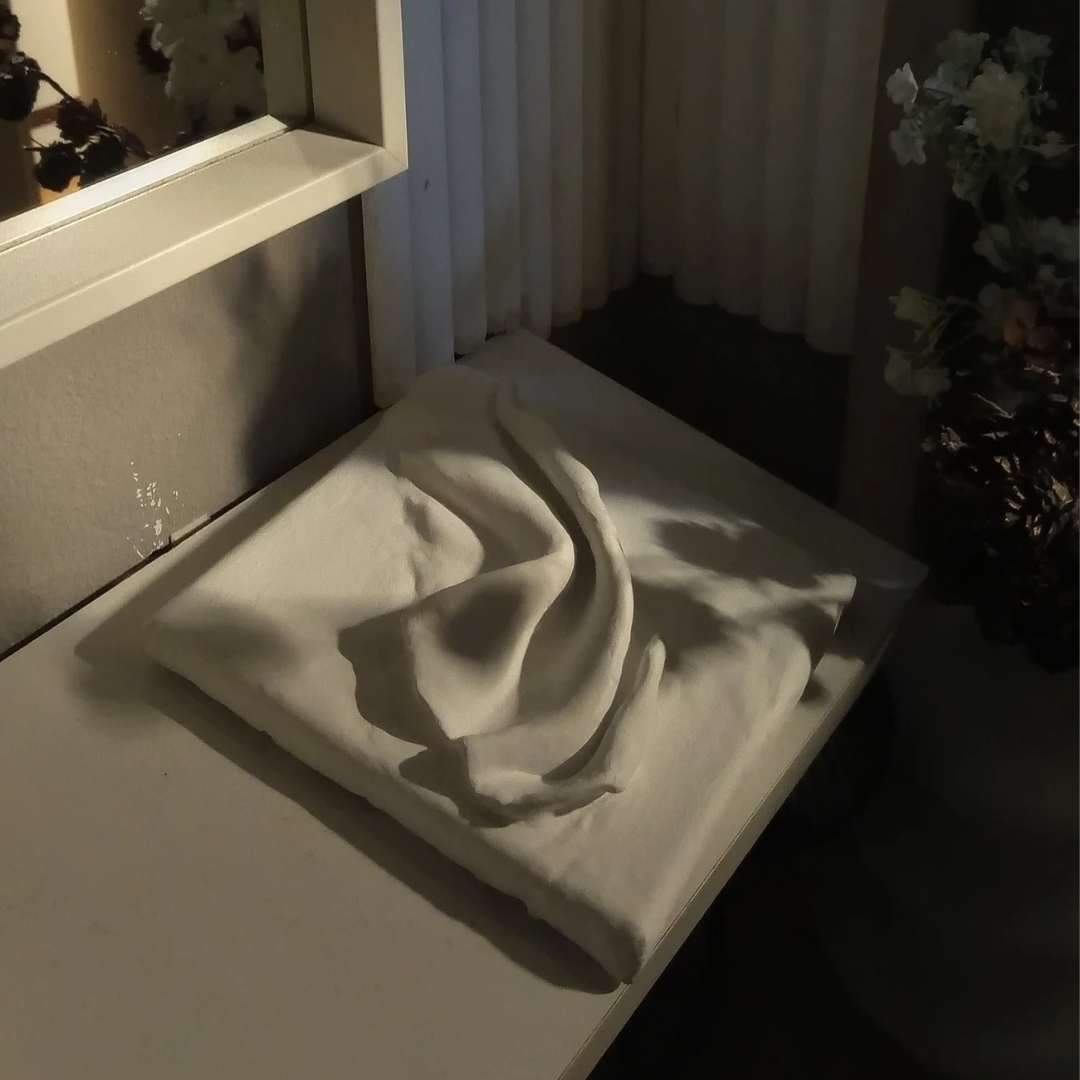 Comfort Zone Mini #01, is an abstract sculpture representing a bed in the morning. And the fierce desire not to leave it.