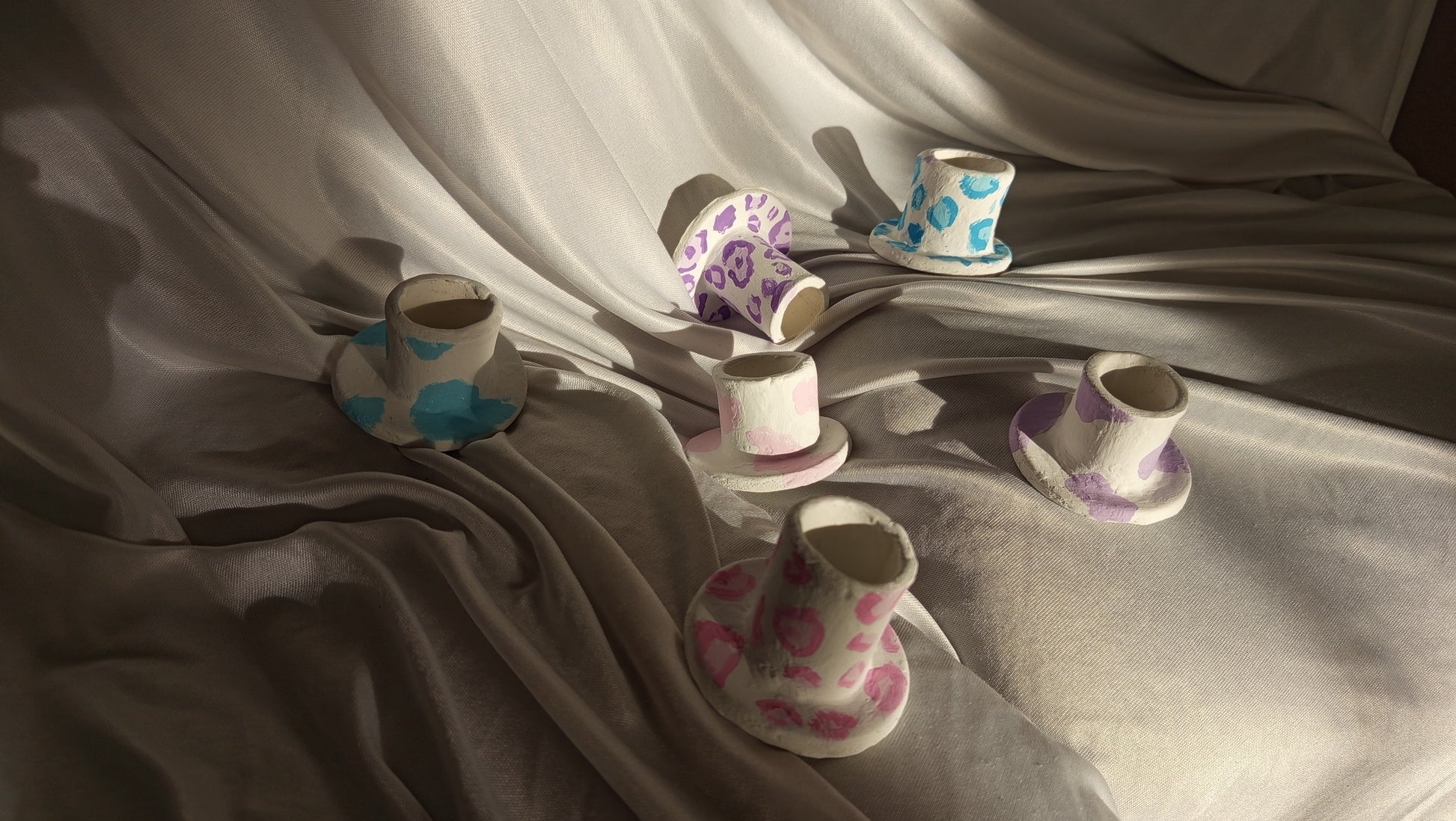 Der Kerzenhalter "Meugler" besteht aus 3 Einzelteilen. Jeder Kerzenhalter ist mit Sorgfalt geformt aus selbsthärtenden Ton. Mit mehreren Schichten Acrylfarbe bemalt, sind sie zum jeden Anlass ein echter Hingucker. Jeder Kerzenhalter weist leichte Unregelmäßigkeiten und Unterschiede auf, was jedes Stück einzigartig macht.