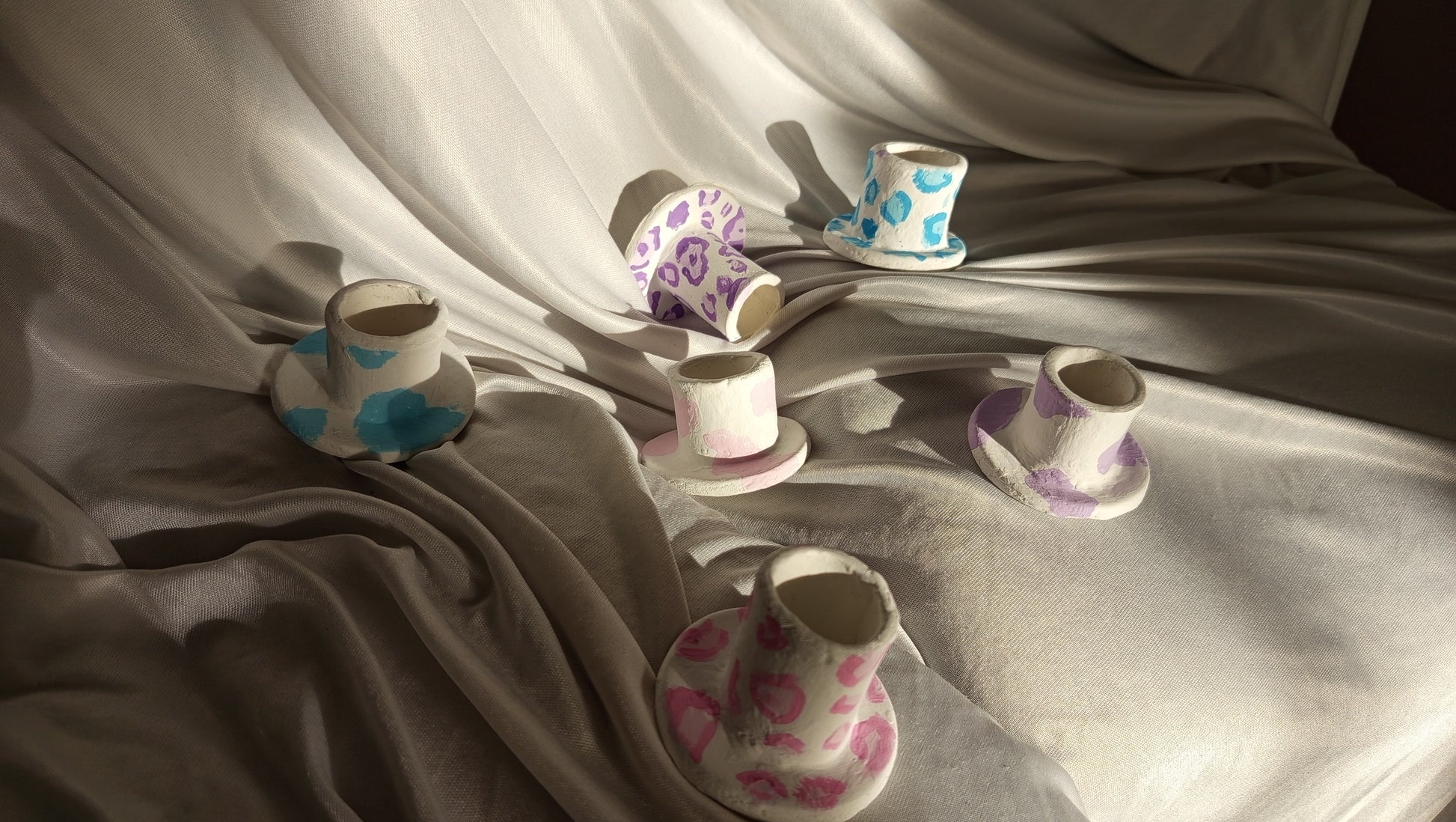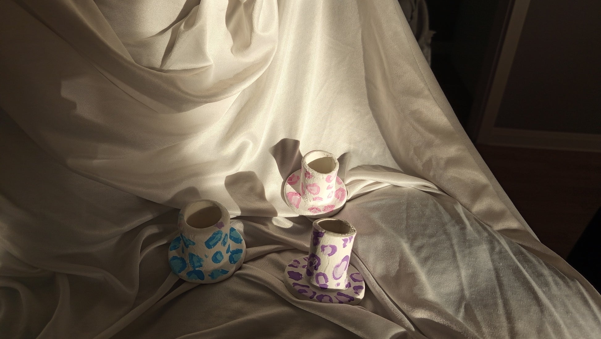 Der Kerzenhalter "Miauler" besteht aus 3 Einzelteilen. Jeder Kerzenhalter ist mit Sorgfalt geformt aus selbsthärtenden Ton. Mit mehreren Schichten Acrylfarbe bemalt, sind sie zum jeden Anlass ein echter Hingucker. Jeder Kerzenhalter weist leichte Unregelmäßigkeiten und Unterschiede auf, was jedes Stück einzigartig macht.
